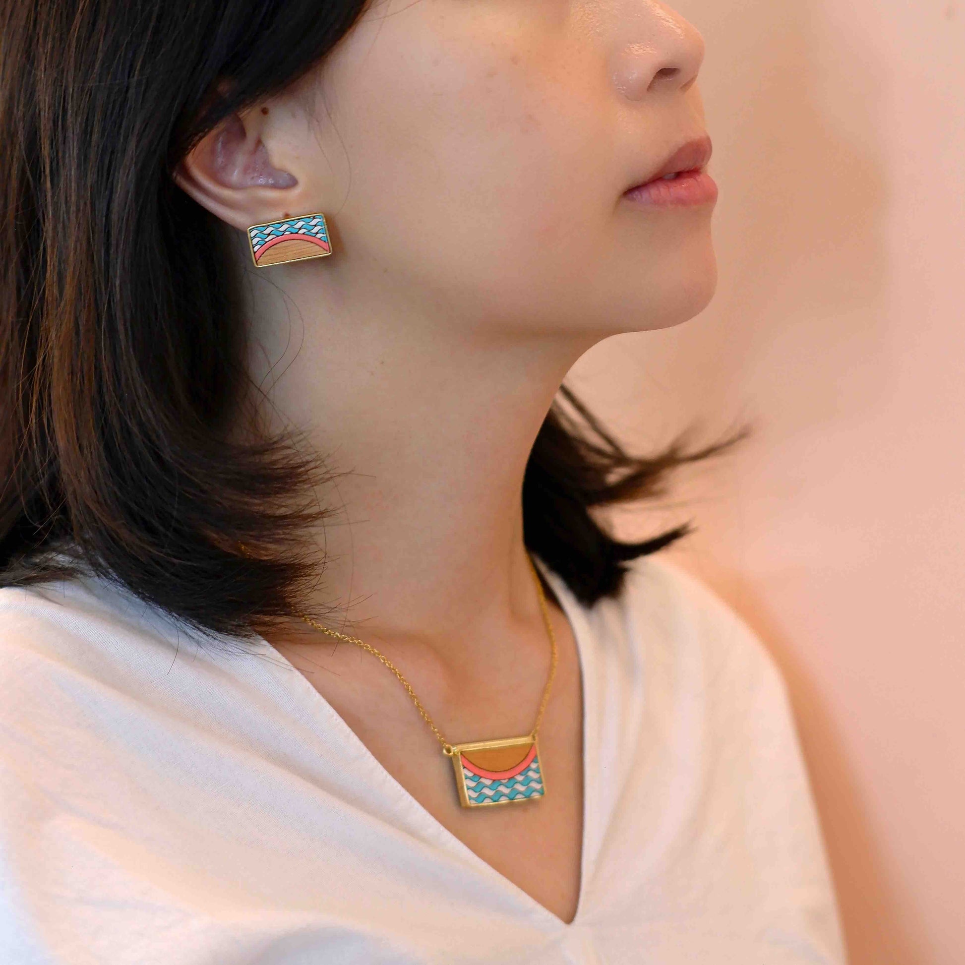 Our Seaside Recycled Wood Gold Earrings are handmade using offcuts of mahogany that are salvaged from furniture factories. This upcycled necklace is elegant, simple and lightweight. Each piece is unique and no two necklaces will ever be quite the same.